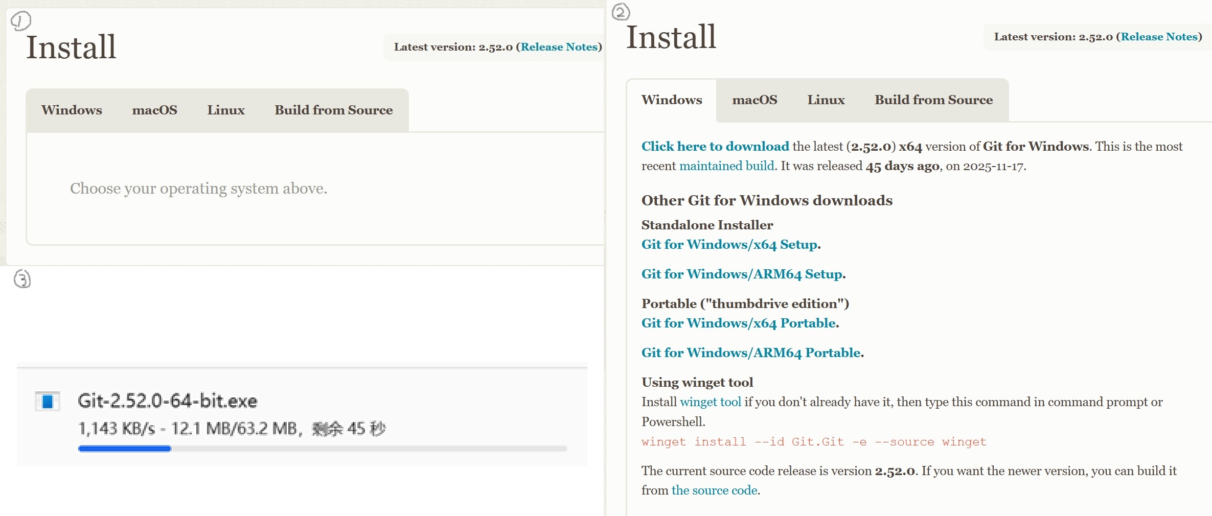 前往 Git - Install 下载正确的安装包